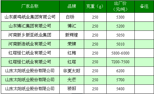 二、主流白卡纸厂家价格一览表