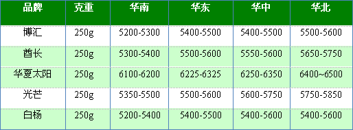 表2:品牌白卡纸地区报价一览表
